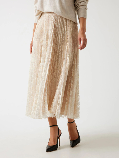 Guess markasının şıklığını ve zarafetini yansıtan bu pileli etek, altın rengiyle göz alıcı bir görünüm sunar.