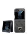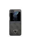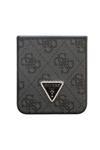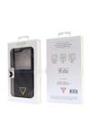 Guess Galaxy Z Flip 5 Uyumlu Kılıf Lisanslı Pu Deri Taşlı Üçgen Logo 4G Desenli Strass Siyah