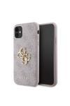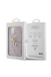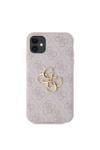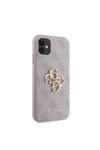 Guess İphone 11 Uyumlu Kılıf Pu Deri Büyük Metal Logo Dizaynlı Kapak Pembe