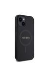 Guess İphone 12 Uyumlu Kılıf Lisanslı Magsafe Şarj Özellikli Yazı Logolu Saffiano Classic Kapak Siyah