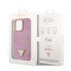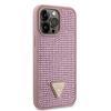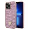 Guess İphone 13 Pro Max Uyumlu Kılıf Orjinal Lisanslı Taşlı Arka Yüzey Üçgen Logolu Kapak Pembe