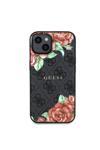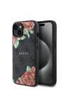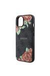 Guess İphone 14 Kılıf Guess Lisanslı Magsafe Şarj Özellikli Gül Baskılı 4G Desenli Yazı Logolu Kapak Siyah