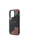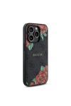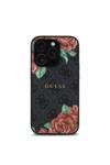 Guess İphone 14 Pro Kılıf Guess Lisanslı Magsafe Şarj Özellikli Gül Baskılı 4G Desenli Yazı Logolu Siyah