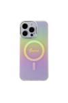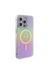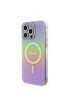 Guess İphone 15 Pro Uyumlu Kılıf Lisanslı Magsafe Şarj Özellik Yazı Logolu Iridescent Pembe