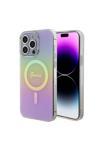 İphone 15 Pro Uyumlu Kılıf Lisanslı Magsafe Şarj Özellik Yazı Logolu Iridescent Pembe