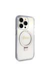 Guess İphone 15 Pro Uyumlu Kılıf Orj Lisanslı Magsafe Özellikli Simli Arka Yüzey Ring Standlı Şeffaf