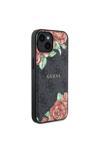 Guess İphone 15 Uyumlu Kılıf Gül Baskılı 4G Desenli Yazı Logolu Kapak Siyah