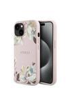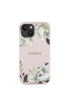 Guess İphone 15 Uyumlu Kılıf Guess Lisanslı M-Safe Özellikli Çiçek Tasarımlı Metal Yazı Logolu Kapak