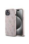 Guess İphone 15 Uyumlu Kılıf Lisanslı Magsafe Özellikli 4G Desenli Yazı Logolu Kapak Pembe