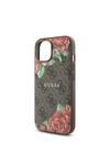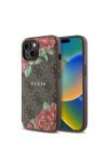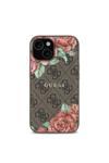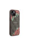 Guess İphone 15 Uyumlu Kılıf Guess Lisanslı Magsafe Şarj Özellikli Gül Baskılı 4G Desenli Yazı Kahverengi