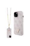 Guess İphone 15 Uyumlu Kılıf Lisanslı Pu Deritaşlımetalüçgenlogoluçaprazvücutaskılı 4G Desenli Pembe
