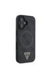 Guess İphone 16 Kılıf Lisanslı Magsafe Şarj Özellikli Pu Üçgen Logo 4G Desenli Kapak Siyah
