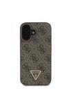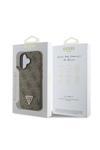 Guess İphone 16 Kılıf Uyumlu Pu Deri Taşlı Üçgen Logo 4G Desenli Strass Kapak Kahverengi