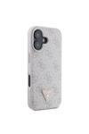 Guess İphone 16 Plus Kılıf Guess Lisanslı Magsafe Özellikli Pu Deri 4G Desenli Taşlı Üçgen Logolu Pembe