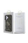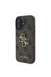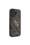Guess İphone 16 Plus Kılıf Lisanslı Pu Deri 4G Desen Metal Büyük 4G Ve Yazı Logo Kahverengi