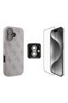 Guess İphone 16 Plus Lisanslı 3'Lü Aksesuar Seti Kılıf-Ekran Koruyucu-Lens Koruyucu Pembe