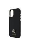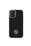 Guess İphone 16 Plus Uyumlu Kılıf Guess Lisans Yazı Ve Taşlı 4G Logo Metal Kamera Çerçeveli Silikon Siyah