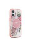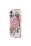 Guess İphone 16 Plus Uyumlu Kılıf Lisanslı Magsafe Özellikli Iml Baskı Yazı Logo Flower Tonal Circle Pembe