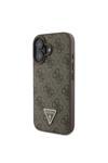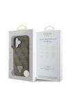 Guess İphone 16 Plus Uyumlu Kılıf Lisanslı Magsafe Özellikli Pu Deri 4G Desenli Taşlı Logo Kahverengi