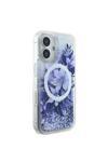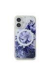 Guess İphone 16 Plus Uyumlu Kılıf Guess Lisanslı Magsafe Şarj Özellikli Sıvılı Simli Çiçek Desenli Mor