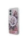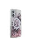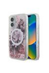 Guess İphone 16 Plus Uyumlu Kılıf Guess Lisanslı Magsafe Şarj Özellikli Sıvılı Simli Çiçek Desenli Pembe
