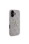Guess İphone 16 Plus Uyumlu Kılıf Guess Lisanslı Pu Deri 4G Desenli Metal Büyük 4G Ve Yazı Logolu Pembe