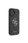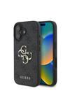 Guess İphone 16 Plus Uyumlu Kılıf Guess Lisanslı Pu Deri 4G Desenli Metal Büyük 4G Ve Yazı Logolu Siyah