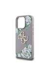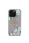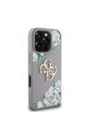 Guess İphone 16 Pro Kılıf Lisanslı Beyaz Gül Baskılı Büyük 4G Metal Logolu Kapak Lavanta Gri