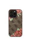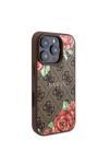 Guess İphone 16 Pro Kılıf Guess Lisanslı Magsafe Şarj Özellikli Gül Baskılı Yazı Logolu Kapak Kahverengi