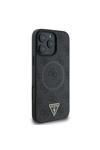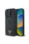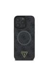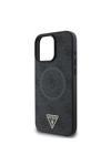 Guess İphone 16 Pro Kılıf Guess Lisanslı Magsafe Şarj Özellikli Pu Üçgen Logo 4G Desenli Kapak Siyah