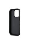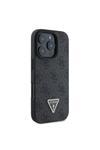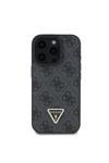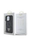 Guess İphone 16 Pro Kılıf Lisanslı Pu Deri Taşlı Üçgen Logo 4G Desenli Strass Kapak Siyah