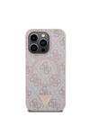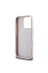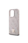 Guess İphone 16 Pro Kılıf Uyumlu Lisanslı Magsafe Şarj Özellikli Pu Üçgen Logo 4G Desenli Kapak Pembe