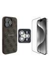 Guess İphone 16 Pro Guess Lisanslı 3İn1 Uyumlu Aksesuar Seti Kılıf + Ekran Ve Lens Koruyucu Kahverengi