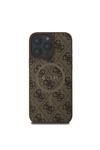 Guess İphone 16 Pro Max Uyumlu Guess Halkalı Magsafe Şarj Özellikli 4G Desenli Yazı Logolu Kahverengi