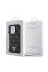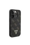 Guess İphone 16 Pro Max Uyumlu Kılıf Lisanslı Pu Deri 4G Desenli Üçgen Logolu Kapak Siyah