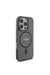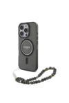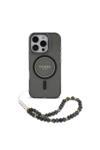 Guess İphone 16 Pro Uyumlu Kılıf Lisans Magsafe Özellik Simli Silikon İnci Bileklikli Siyah