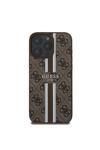 Guess İphone 16 Pro Uyumlu Kılıf Guess Lisanslı Magsafe Şarj Özellikli 4G Şerit Tasarımlı Kahverengi