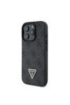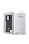 Guess İphone 16 Pro Uyumlu Lisanslı Magsafe Özellik Pu Deri 4G Desenli Taşlı Üçgen Logo Siyah