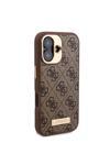 Guess İphone 16 Uyumlu Kılıf Guess Lisanslı Magsafe Özellik Pu 4G Desenli Metal Klasik Logolu Kahverengi