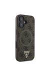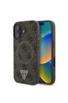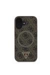 Guess İphone 16 Uyumlu Kılıf Lisanslı Magsafe Şarj Özellikli Pu Üçgen Logo 4G Desenli Kapak Kahverengi