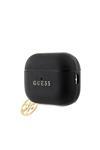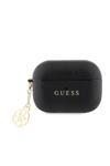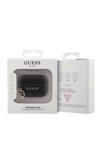 Guess Kulak İçi Kulaklık 2 Kılıf Lisanslı Dokulu 4G Yuvarlak Süs Zincirli Saffiano Siyah