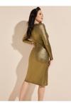 Guess markasının şıklığı ve zarafetiyle tasarlanan bu elbise, yeşil rengiyle dikkat çekiyor.