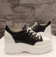 Elwa Siyah Cilt Bağcıklı Spor Ayakkabı - Image 1