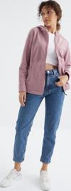 Gül Kurusu Kapüşonlu Fermuarlı Rahat Form Kadın Polar Sweatshirt - 97233