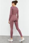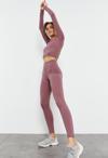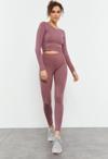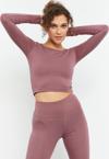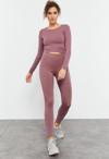 Gül Kurusu Uzun Kollu Dar Kalıp  O Yaka Kadın Crop Top T-Shirt - 97150