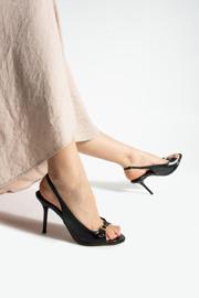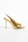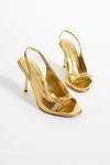 Güllü Shoes Altın Sarı Desenli Kadın Yazlık Topuklu Sandalet -9Cm Topuk, Şık Vegan Deri, Hafıza Pedli