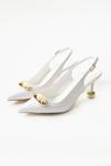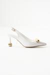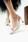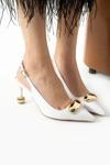 Güllü Shoes Beyaz Rugan Vegan Deri 7Cm İnce Topuklu Stiletto | Gold Detaylı Şık Kadın Ofis Abiye Günlük Ayakkabı