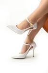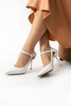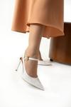 Güllü Shoes Bilekten Tokalı Beyaz Rugan Stiletto | Beyaz İnce Topuk | Rahat Kalıp| Sivri Burun Şık Kadın Topuklu