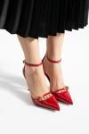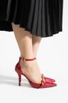 Güllü Shoes Kırmızı Parlak Kırışık Vegan Deri Stiletto | 9Cm İnce Topuk | Sivri Burun | Şık Rahat Kadın Ayakkabı
