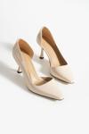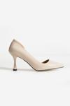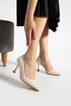 Güllü Shoes Krem Kırışık Parlak Vegan Deri Kare Burun 7 Cm Topuklu Kadın Ayakkabı | Rahat, Şık, Özel Gün Stil